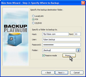 SoftLogica Backup PlatinumSoftLogica's Backup Platinum comes to use from Novosibirsk, Siberia. Instead of having its own proprietary data compression scheme, it depends on standard Zip compression -- if you use compression at all. Backup Platinum offers several options that aren't available in most backup applications. One of the most interesting aspects of the program is its ability to back up to an FTP server. While this is slower than backing up to a local device, you can have the process run overnight. Storing the files on an FTP server has the advantage of keeping the backup separated from the data so that a single catastrophe doesn't destroy both the computer and the backup. You might be concerned about security, but SoftLogica include the ability to encrypt data. Domain registrar GoDaddy.com recently set up a system that allows users to store up to 2GB of data on-line for $20 per year. You could use Backup Platinum to store a full backup to CD, DVD, or hard disk and then use on-line storage for incremental backups. Unlike many competing applications, Backup Platinum works not only with Windows XP (Home and Pro) but also with Windows 95 and 98, Windows ME, NT, and 2000. The program includes a scheduler to run backups automatically. It can also run as a service under Windows NT and higher so that backups can run when nobody is logged in. I mentioned earlier that Backup Platinum can use Zip compression to store files. This may seem odd because most backup applications use their own proprietary format. While this is efficient, only the application that made the file will be able to restore the data -- and in the case I encountered, when Stomp's program wasn't able to deal with the file and the company's tech support staff ignored my request for help, there's not much to be done. Zipped files are easily restored because many applications (and some operating systems) can read the file format. Backup Platinum in actionLet's say that I want to make sure my Outlook files are backed up every night and that I've chosen to use a remote machine with FTP access for this task. The first step is to create a new job and give it a name. You could call your backup job Fred, Barney, Joe, or even Bill, but you'll probably have better results if you name it something like "Outlook data files" so that you'll have some idea what it is.