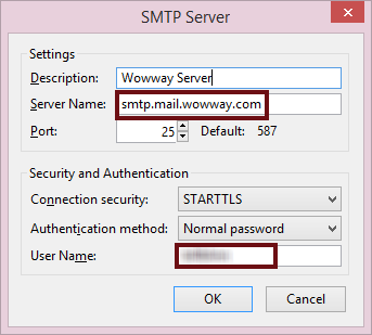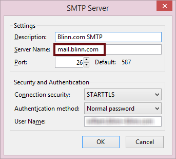 Take the server name back to your e-mail program. Because you are using one company’s server to receive mail and another company’s server to send mail, you cannot use the same credentials for both. You will need to set up explicit credentials (user name and password) to send mail.