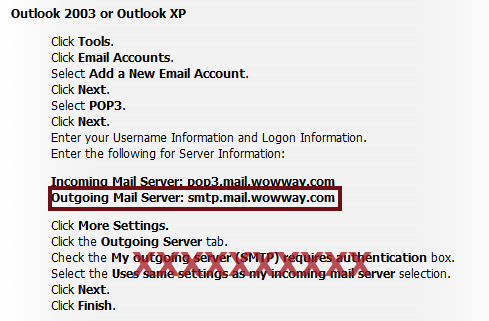 So visit your ISP’s help page and search for instructions to set up an e-mail client. The instructions will probably list several popular applications. Any of these will have the information you need, which is the name of the SMTP (outgoing mail) server. Ignore any authentication instructions; that comes later and it will differ from what the ISP says.