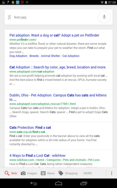 If I suddenly decide that I need another cat and I don't know where to find them because I'm in Hilliard instead of in Worthington, OK Google, Find cats does the trick. Unfortunately, if I'm looking for a cat who has hidden somewhere in the house, this command isn't at all useful.