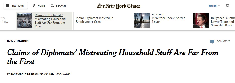 I decided to read the story about a diplomat from India who has been charged with abusing her domestic help.